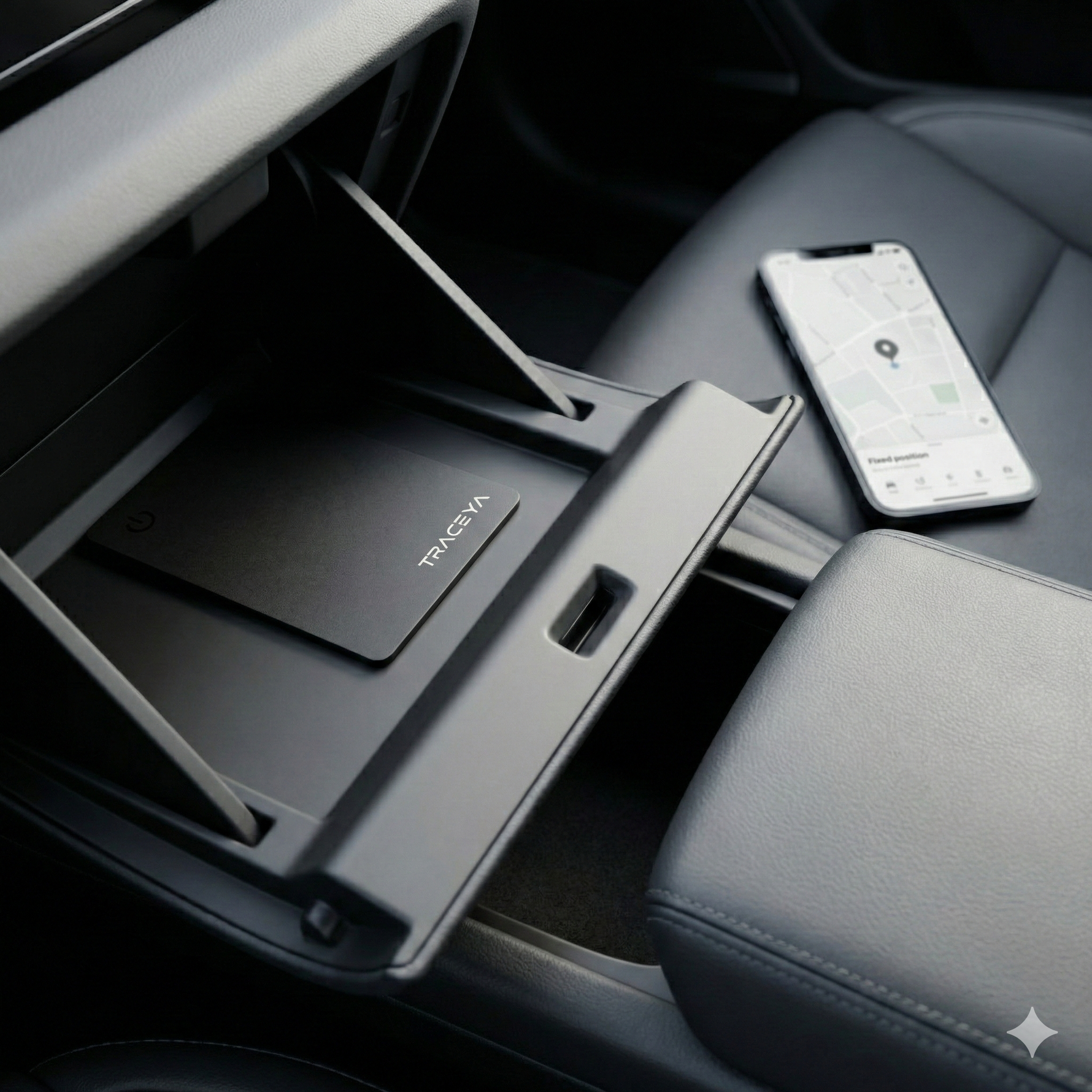 Glissée dans la boîte à gants, la carte reste localisable à distance, en toute discrétion.